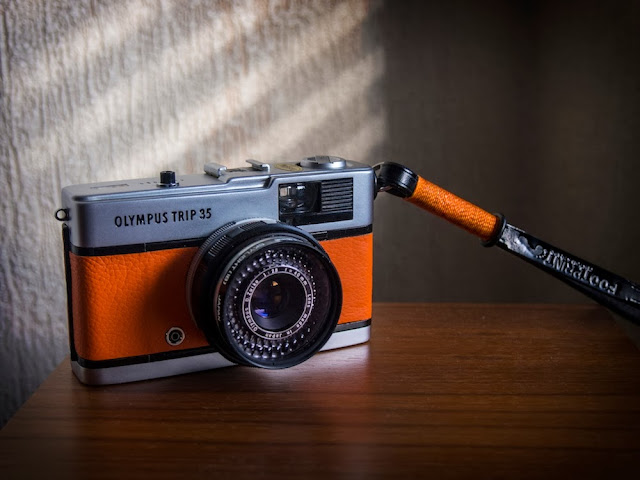 Black/Orange fitted to re-skinned Olympus Trip 35